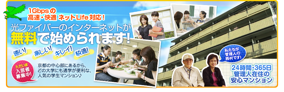京都の学生会館・学生マンションの「シャトーニシムラ」が、4年間の学生ライフを素敵にサポートいたします!!